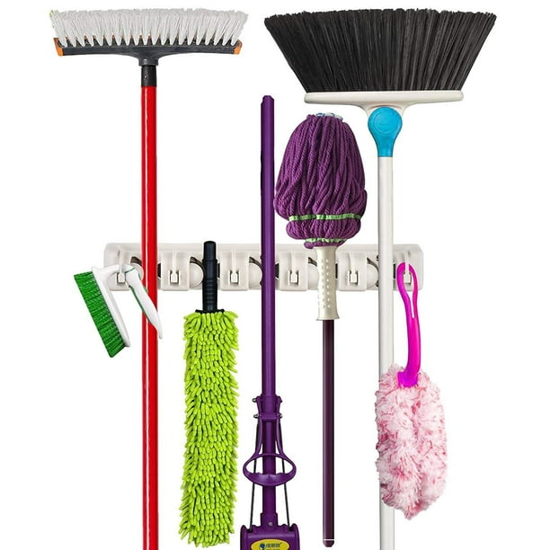 Mop And Broom Holder 5 Position With 6 Hooks Wall Mounted Holders