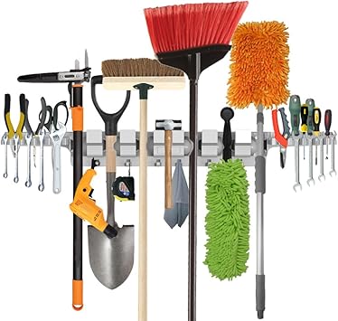 Fetech Home Mop And Broom Holder Wall Mount Garden Tool Storage
