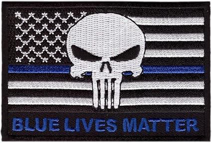 Punisher Skull Usa Flag Police Blue Line Emroidered Iron On Patch