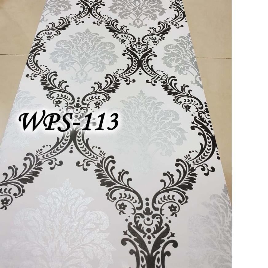 Jual Wps113 White N Cute Black Silver Flower Wallpaper Dinding