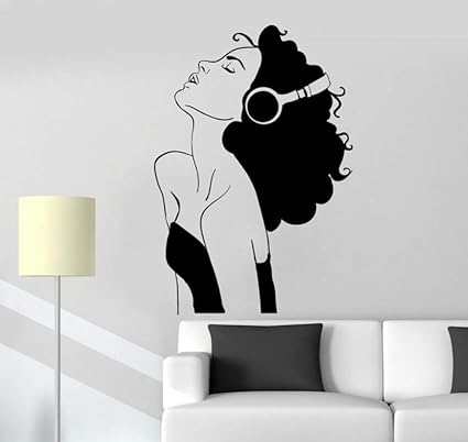 Beautiful Girl Wall Sticker Headphones Music Room Decor Musical