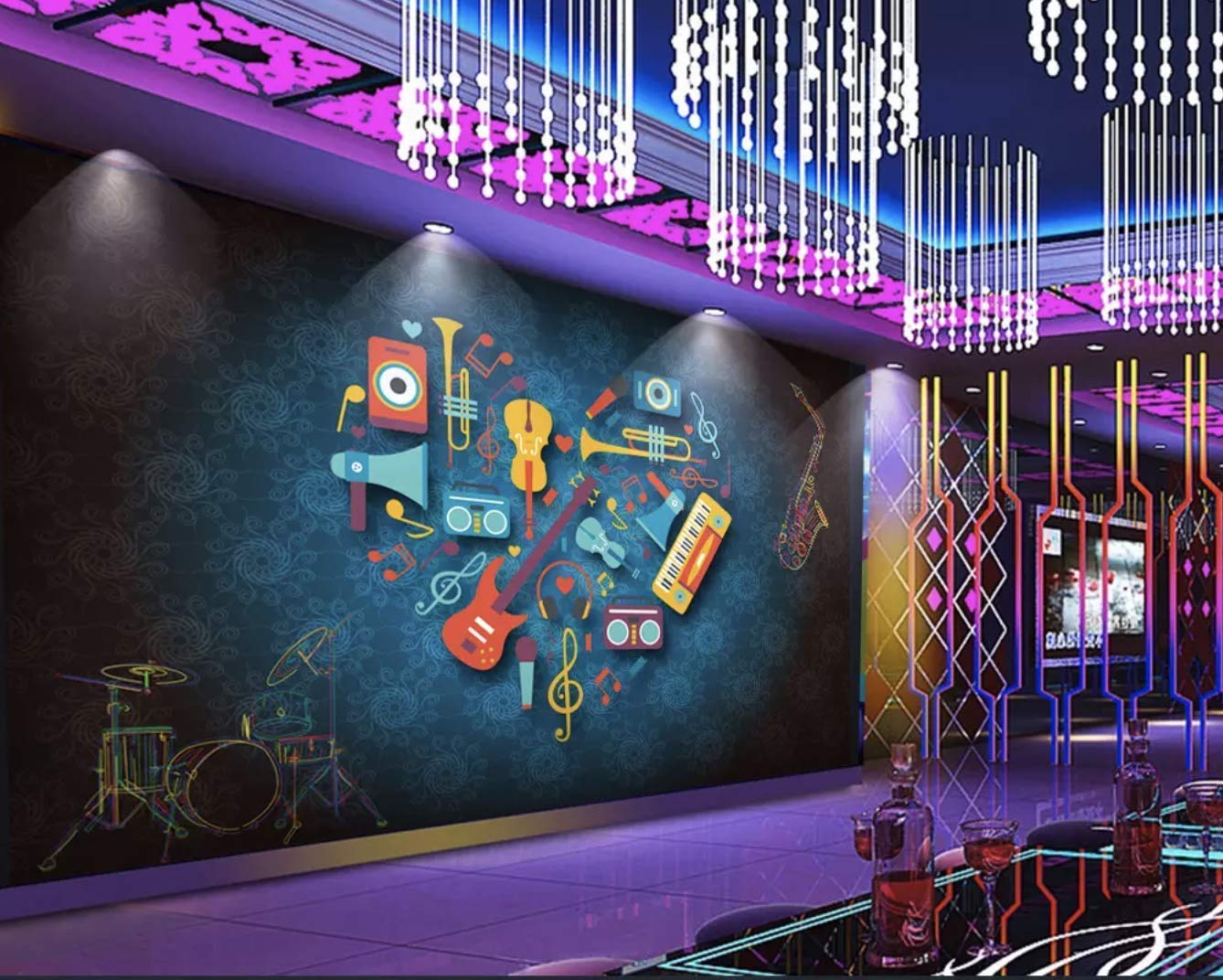 Cartoon Style Music Related Wall Mural Custom Photo Wallpaper For