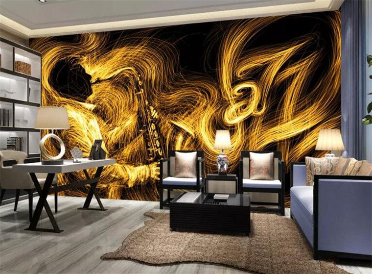 Custom Size Abstract Golden Saxophone Jazz Music Background Wall