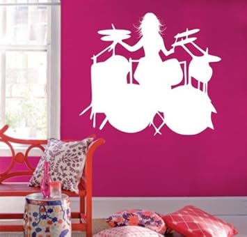 Girl Drummer Decal Sticker Wall Mural Drumset Drum Drums Wall