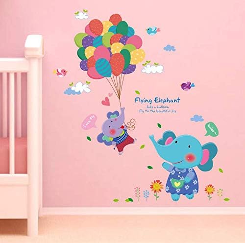 Lovely Cartoon Elephant Colorful Balloon Wall Sticker Diy