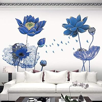 Izsd Wall Sticker Vintage Poster Blue Lotus Flower 3d Wallpaper