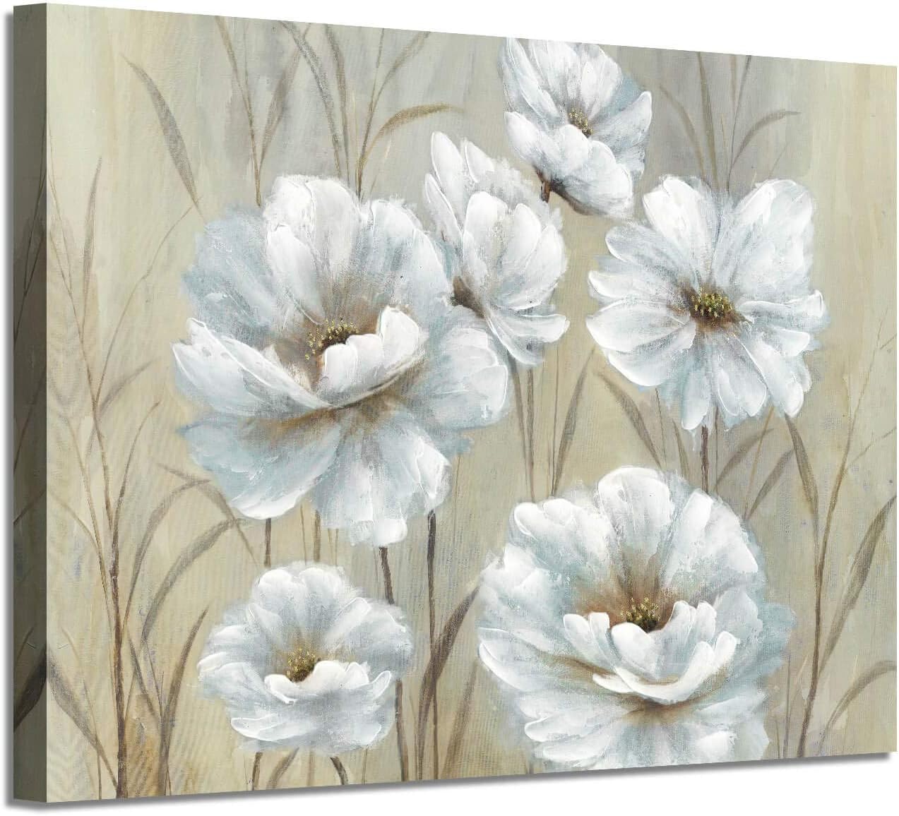 Amazon Com White Flower Canvas Wall Art Abstract Floral Painting