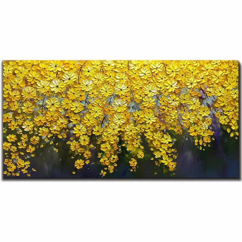 Fine Art Yellow Grey Abstract Painting White Flowers Canvas Art