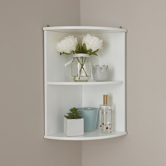White Corner Bathroom Shelves Storage Unit Tiers Wall Mounted