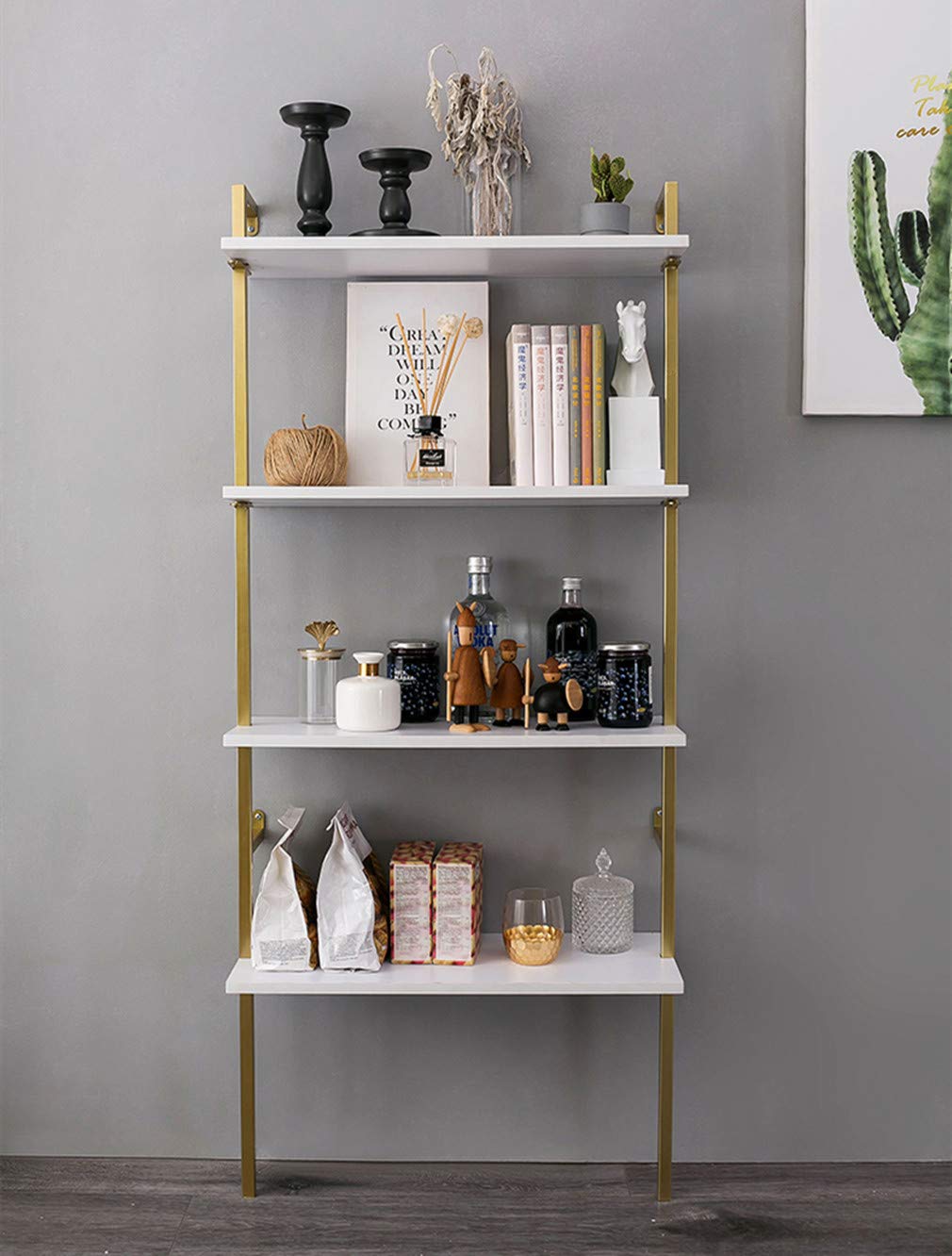 Amazon Com Wall Mounted 4 Tier Modern White Wood Shelf With Gold