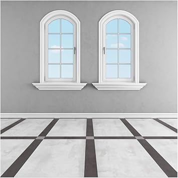 Amazon Com Laeacco Classic Chic Room Backdrop 5x5ft White Arched Windows Vinyl Photography Background Blue Sky Gray Wall Marble Floor Ceramic File Living Room Decor