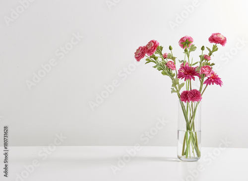 Home Interior Floral Decor Beautiful Flowers In A Vase On A White