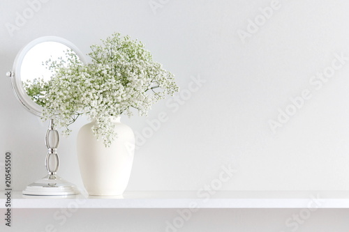 White Wall Vase Of Flowers White Background Buy This Stock Photo