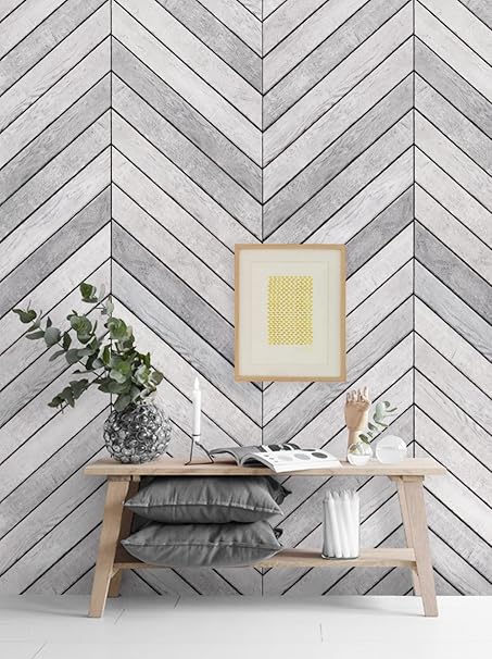 Chevron Grey White Wood Accent Mural Wall Art Wallpaper Peel And