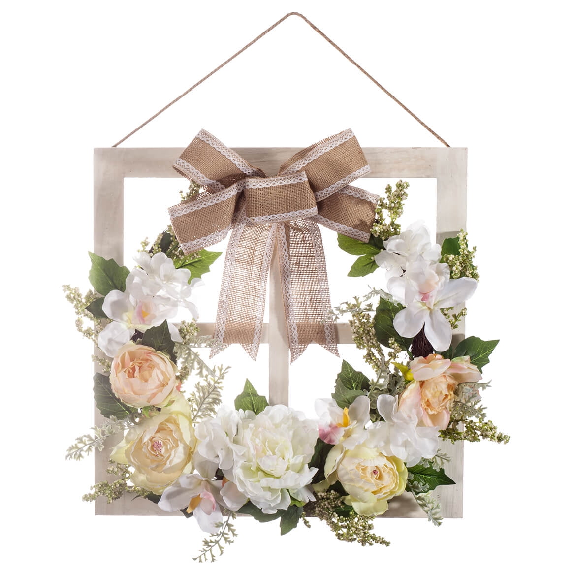 Whitewash Window Frame With Floral Wreath Home Accent Decor 18
