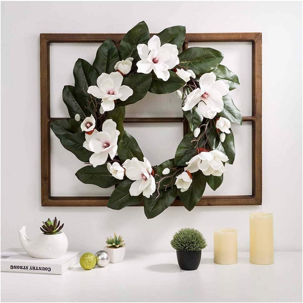 Amazon Com Glitzhome Wooden Window Frame With Magnolia Wreath