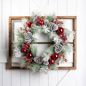 Glitzhome 24 In Unlit Flocked Pinecone And Berry Wreath With