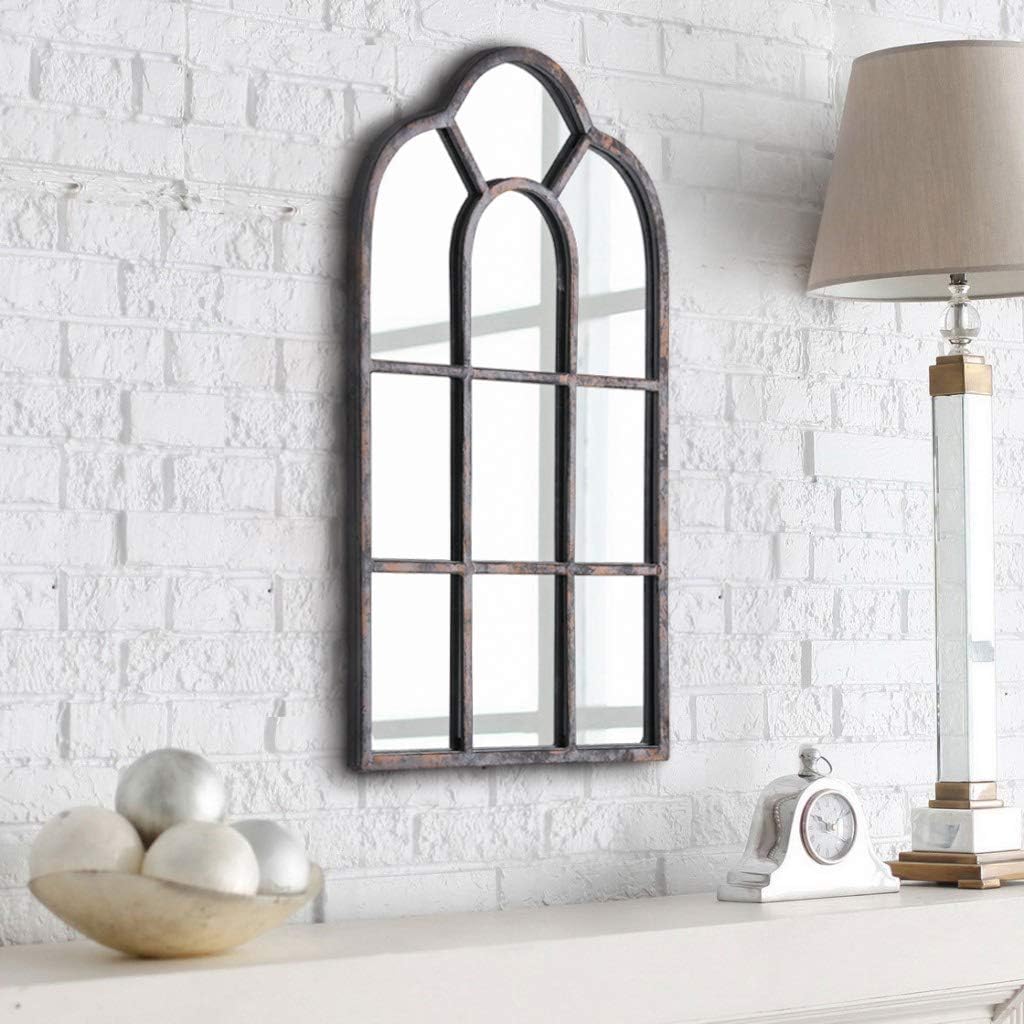Plinrise Wall Mirror Vintage Arched Windowpane Mirror Metal