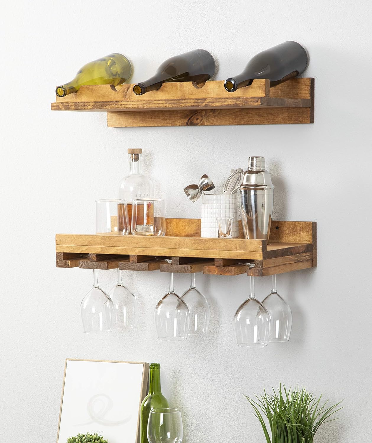 Wood Wine Rack Shelves Wall Mounted Shelf Hanging Stemware