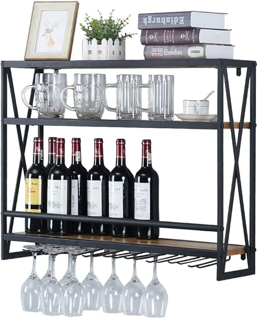 Amazon Com Fodue Rustic Wall Mounted Wine Racks With Glass Holder