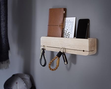 Wall Mounted Key Holder Wood Letter Rack Do Organizer By Natuhr Shelf Storage Of Keys Letters Smartphone Tablets Oak Chalked Amazon Co Uk Kitchen Home