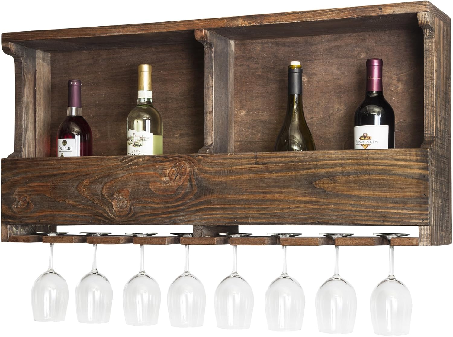 Amazon Com Imperative Decor Rustic Wood Wall Mounted Wine Rack Stemware Holder Set Floating Wine Shelf And Glass Rack Handmade In The Usa 24 X 5 5 Grey Home Kitchen