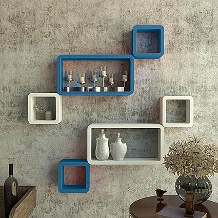 Home Blues Living Room And Drawing Room Nesting Wooden Wall Shelf
