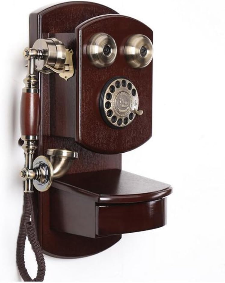 Hfffha Wooden Wall Mounted Antique Cable Landline Telephone