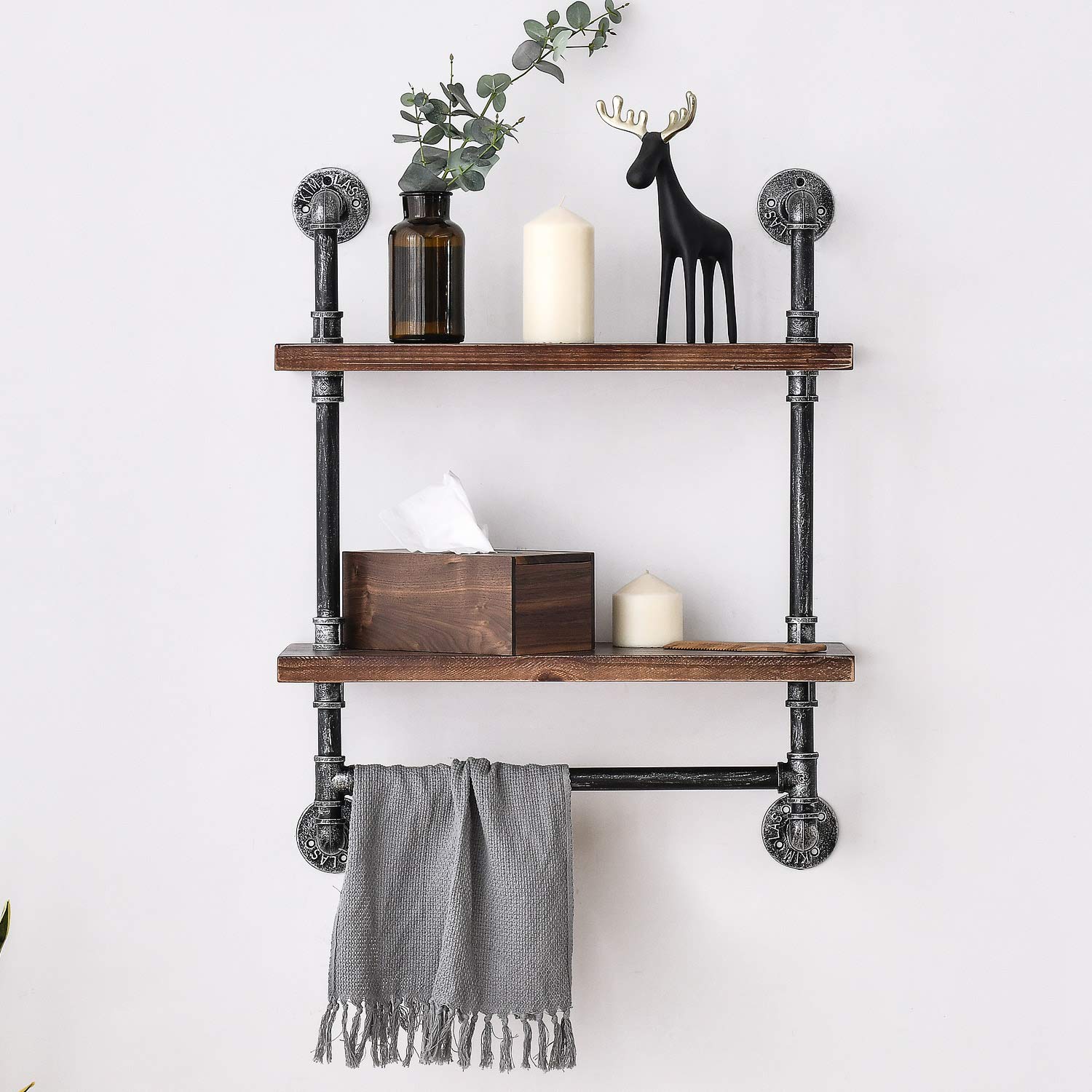 Fodue Industrial Pipe Shelf Rustic Wall Shelf With Towel Bar 24