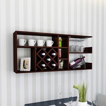 Amazon Com Contemporary Cherry Finish Wood Wine Rack Wall Unit