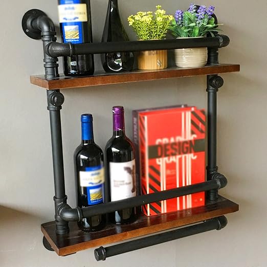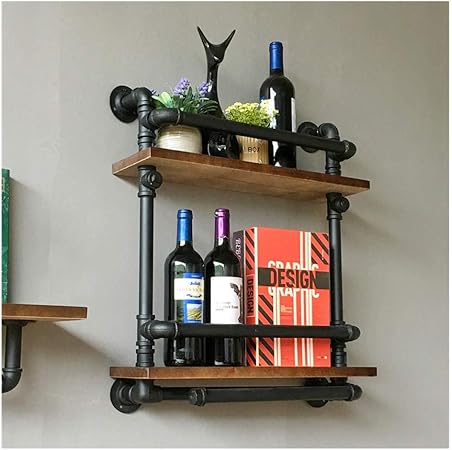 Wall Shelf Industrial Retro Solid Wood Water Pipe Wine Rack Wall