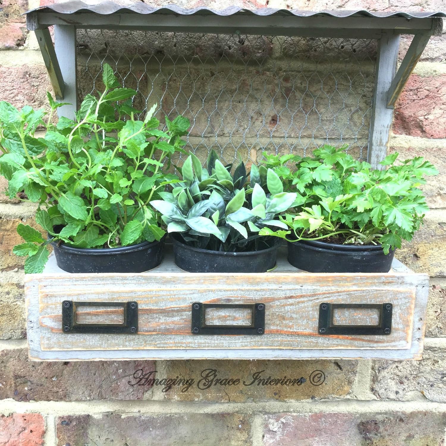 Shabby Chic Vintage Style Wooden Wall Garden Planter Pots Herb