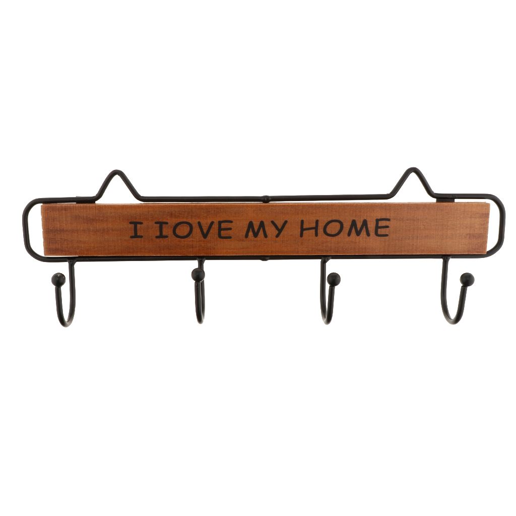 Vintage Style Metal Wooden Wall Hook I Love My Home Storage