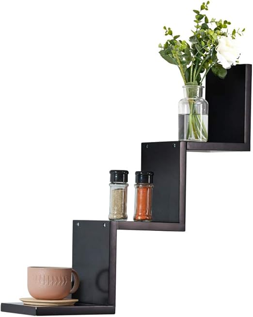 Sokhi Side Corner Mount Wall Shelves Zigzag Shape Rack Wooden Wall