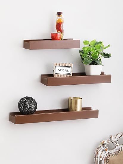 Artesia Brown Wooden Wall Shelf Display Rack Shelf Set Of Three
