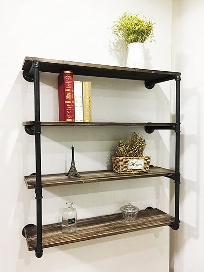 Amazon Com Wgx Industrial Bookcase Pipe Wood Wall Shelves Rustic