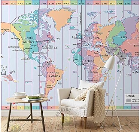 World Time Zone Map 3d Wallpaper Living Room Tv Wall Kids Room