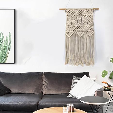 Amazon Com 27x18inches Handmade Macrame Wall Hanging Beige Cotton