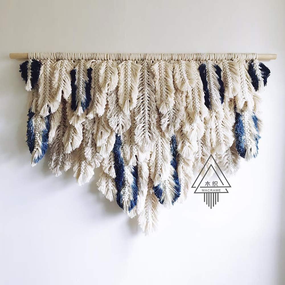 Yarn Tapestry Yarn Wall Hanging Wall Tapestry Blue Beige Lace And