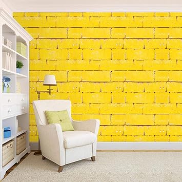 Amazon Com Peel Stick Prepasted 3d Bright Yellow Brick Wallpaper
