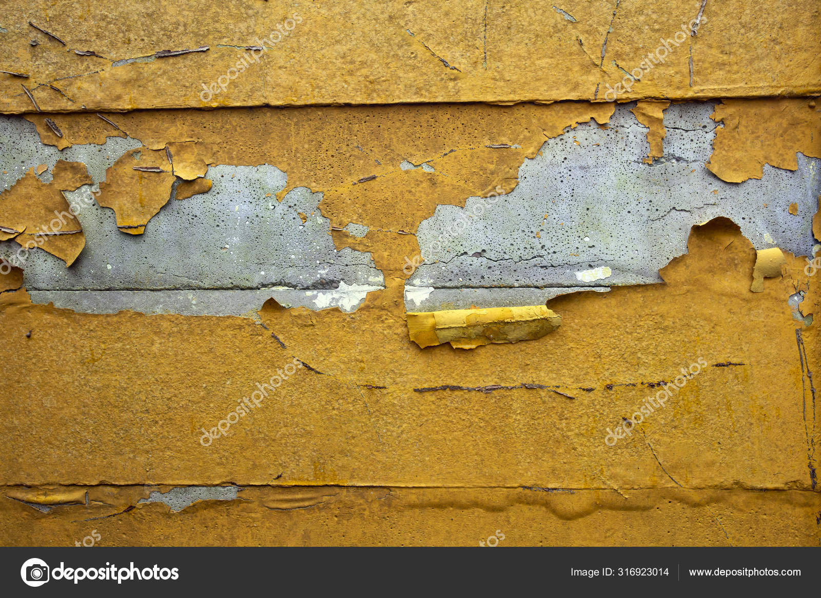 Concrete Wall With Yellow Orange Peeling Paint Old Cracked